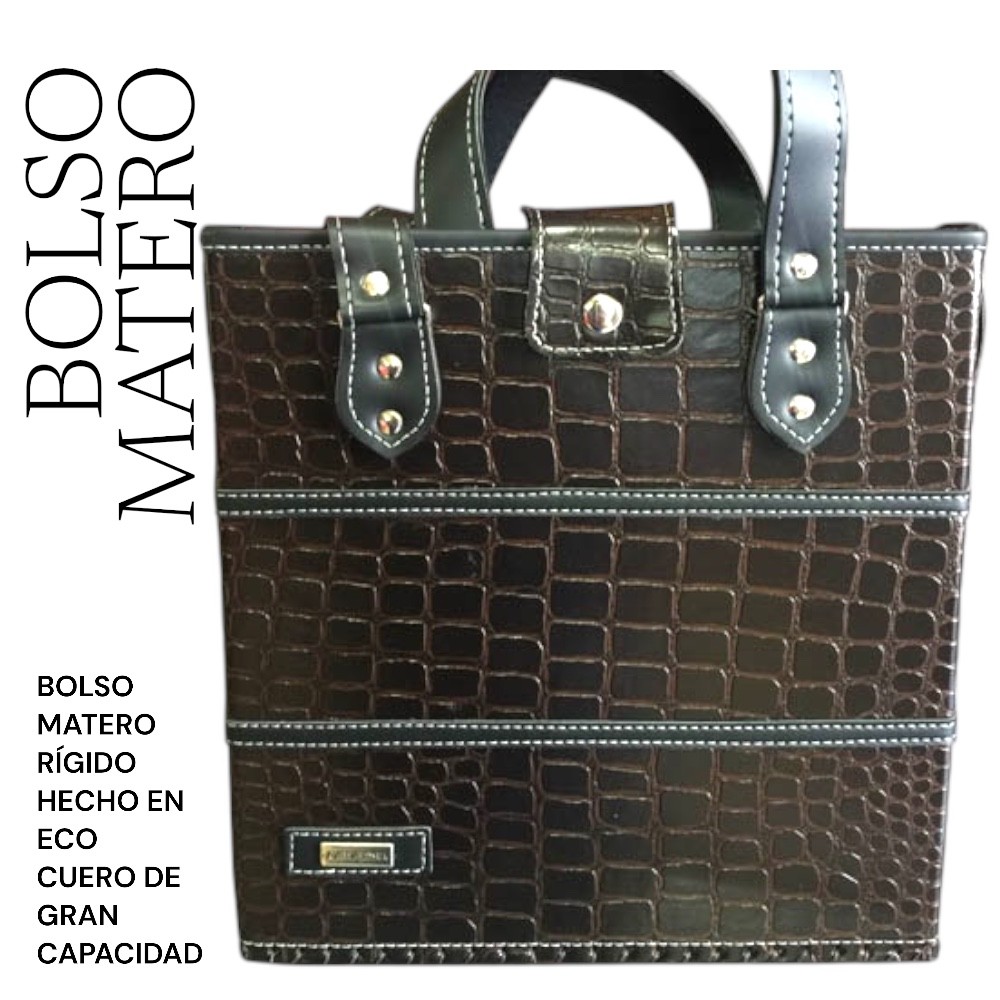 Bolso Matero cuadrado croco marron.