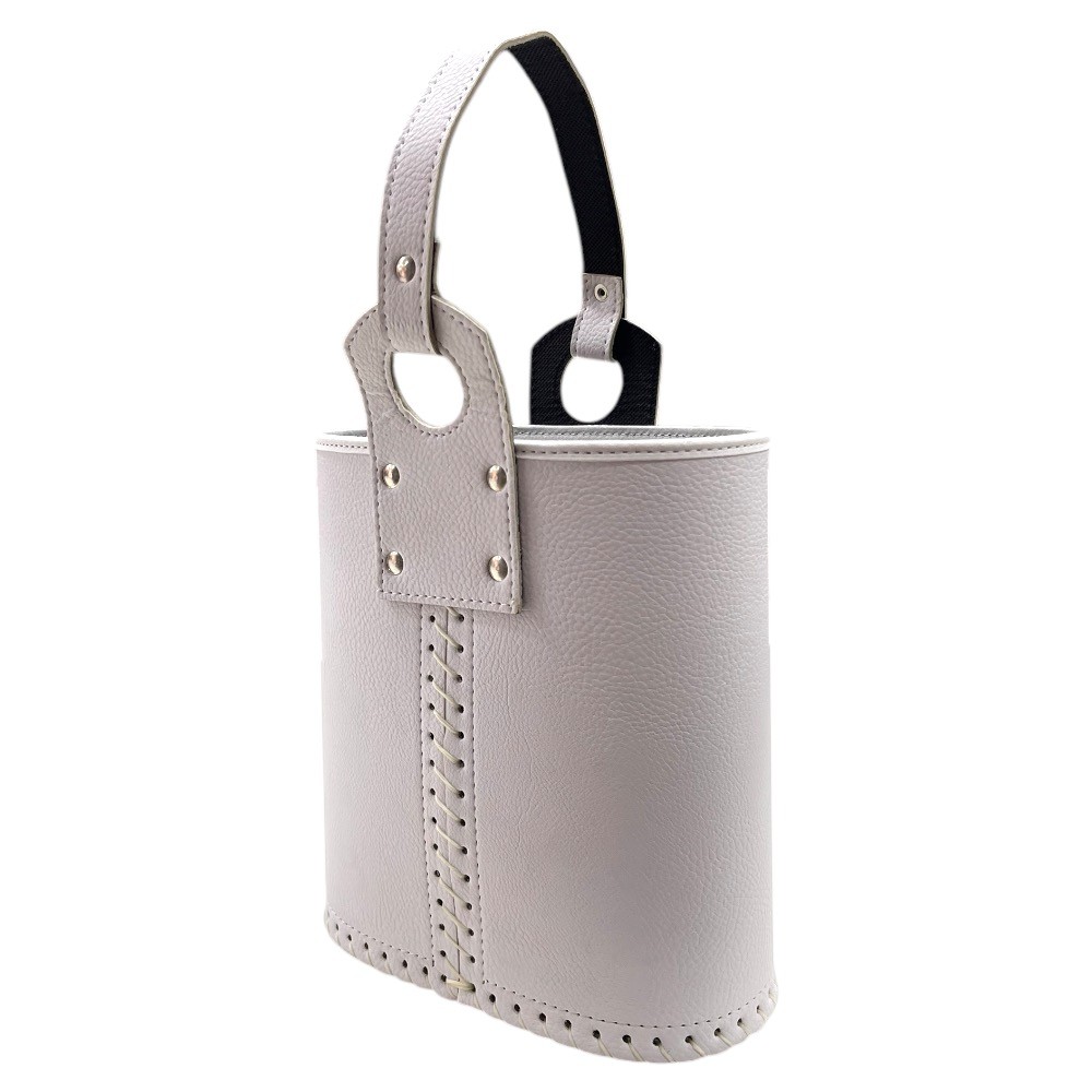 Canasta oval eco cuero blanco.