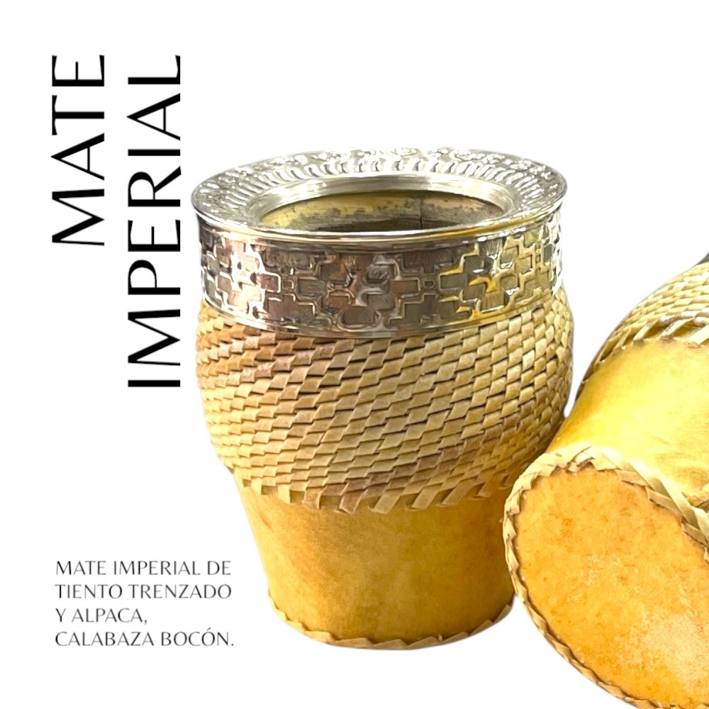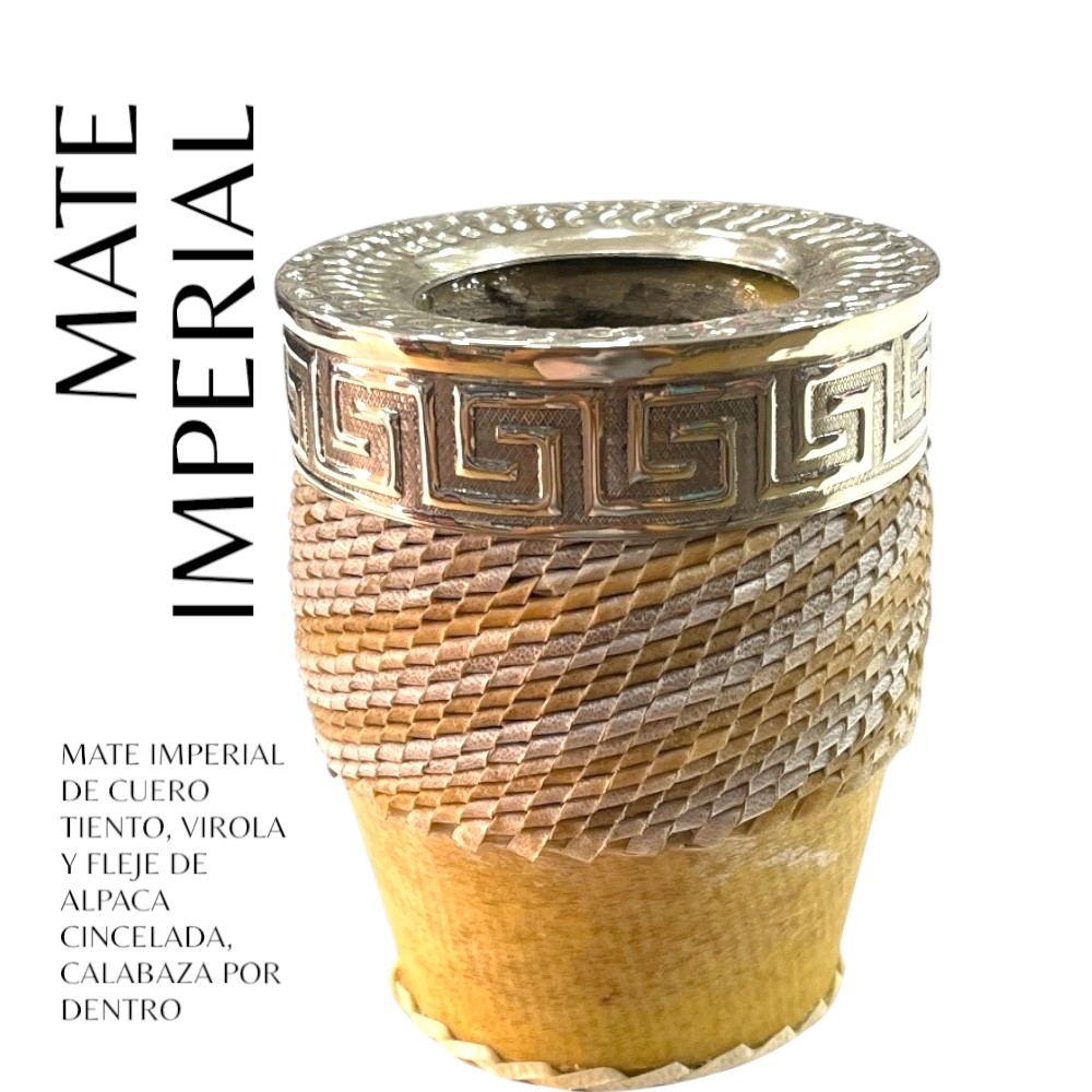 Imperial cuero tiento alpaca cincelada, fleje y virola de alpaca.