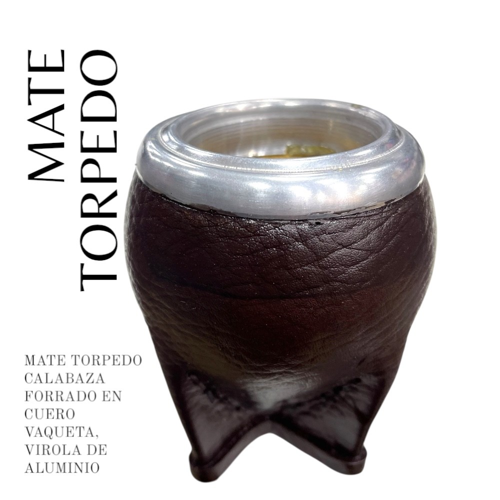 Mate torpedo forrado en cuero vaqueta.