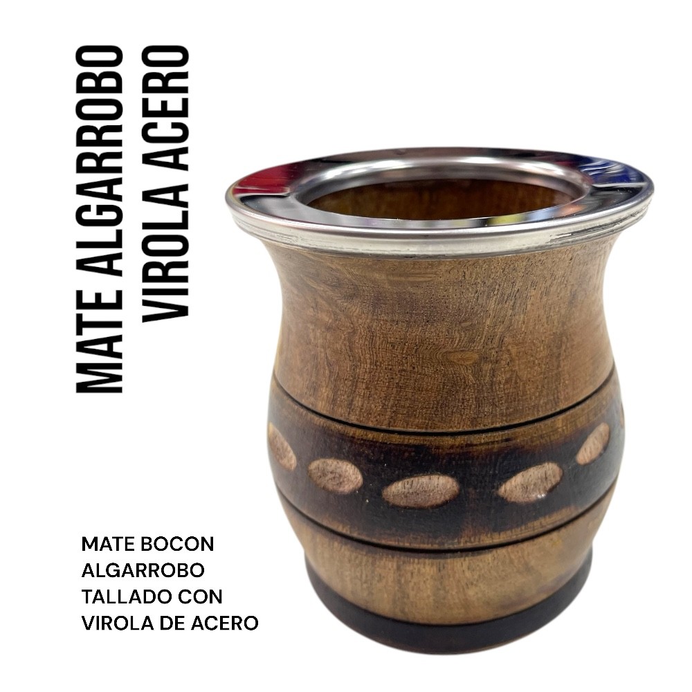 Mate Algarrobo Tallado virola Acero.