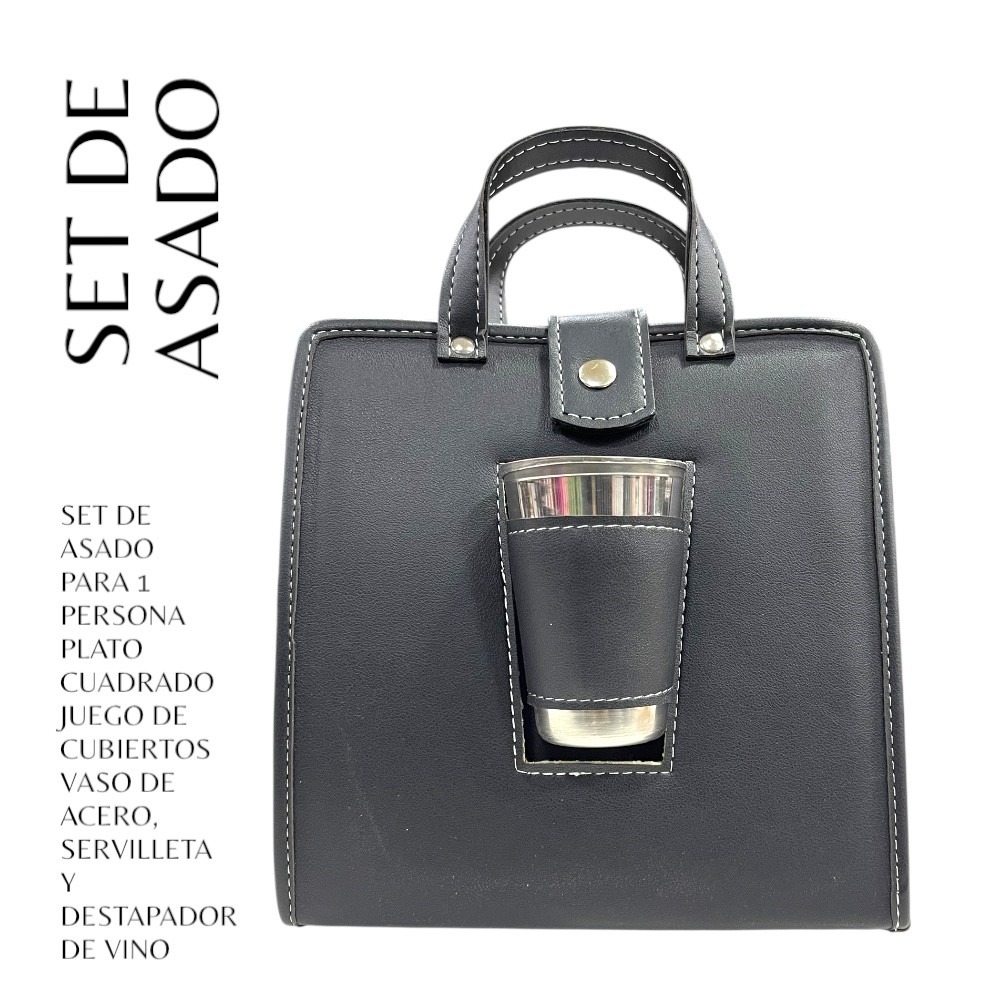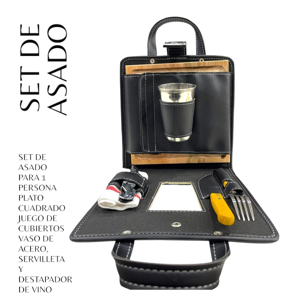 • Set de asado cuadrado en eco cuero