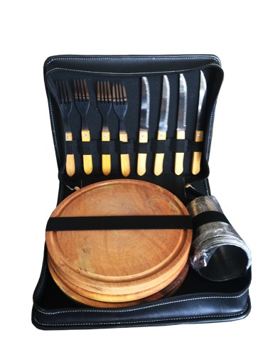 Set de Asado para 4 personas eco cuero cabra negro.