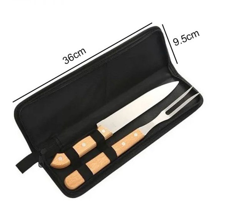 Set Parrillero x2 importado, acero inoxidable en estuche con cierre.