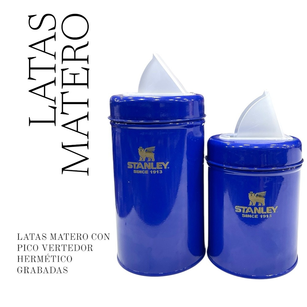 Latas Matero grabado a laser azul.