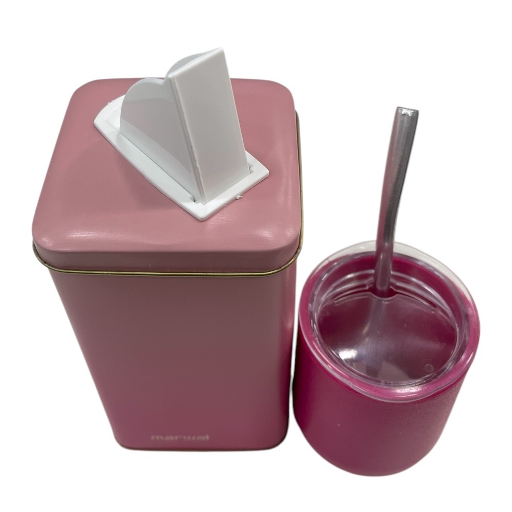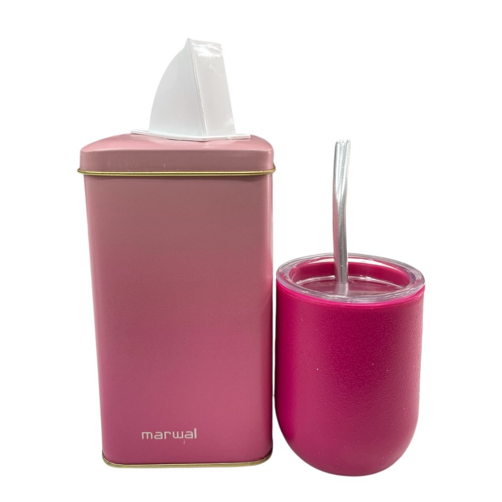 Lata rectangular mate y bombilla fucsia.