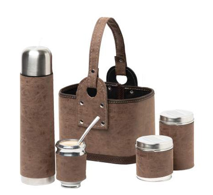 Set Matero canasta eco cuero marron.