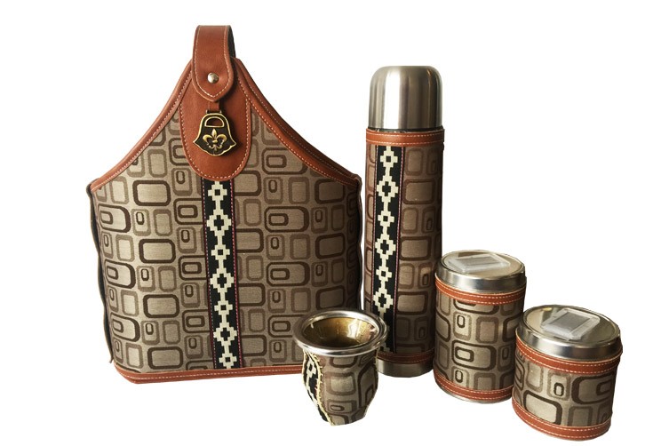 Set de Mate canasta eco cuero marron