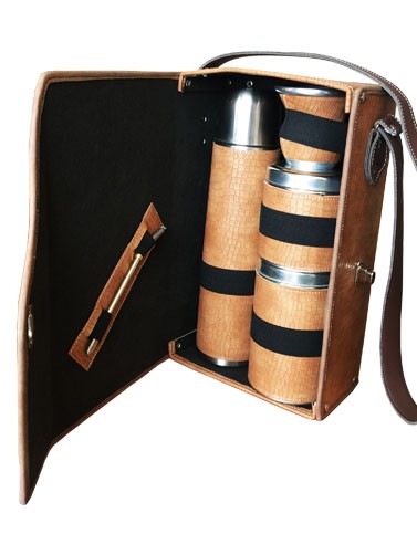 - Termo Bala de 1 litro en acero inoxidable forrado en cuerina